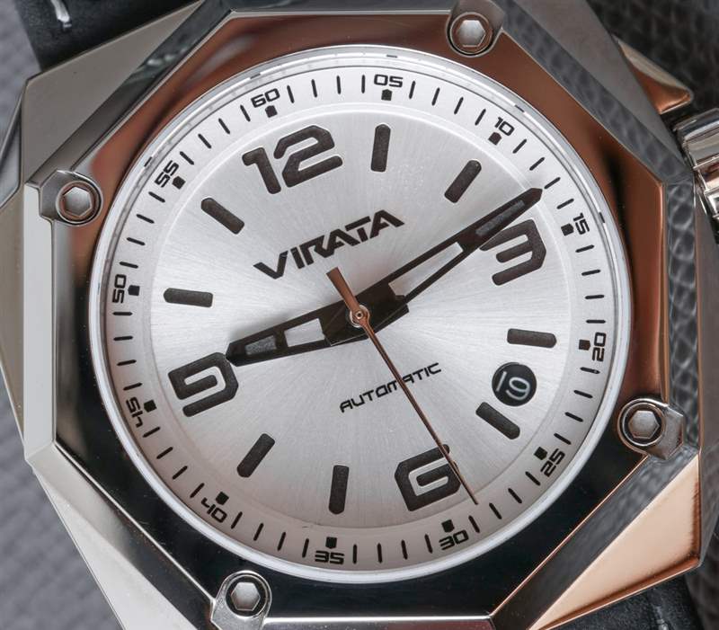 幸好 Virata 保持表盤干凈,但也很有趣。外部分鐘標(biāo)記環(huán)用于增加額外的視覺(jué)深度,表盤本身并不像任何其他特定設(shè)計(jì)的復(fù)制品——即使它并沒(méi)有試圖讓你感到新奇。我喜歡 Virata 的設(shè)計(jì)師明白,通過(guò)像這樣更狂野的表殼設(shè)計(jì),保持表盤相對(duì)簡(jiǎn)單,同時(shí)確保表殼和表盤在視覺(jué)上和諧地搭配在一起是個(gè)好主意。
