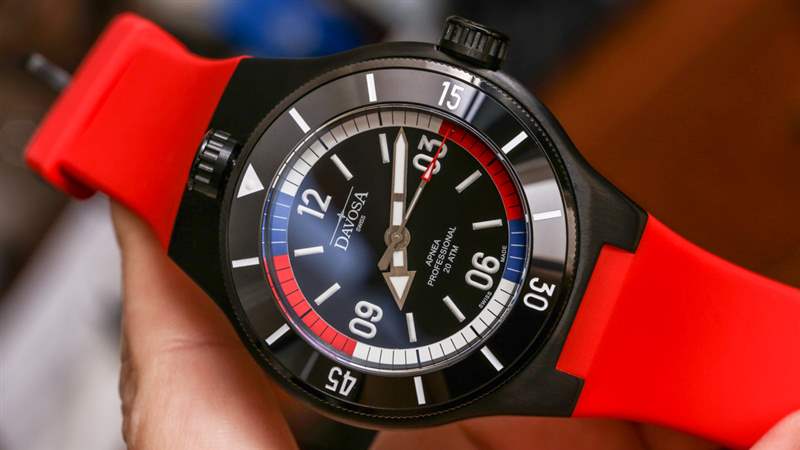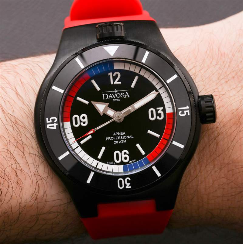 術(shù)語(yǔ)“呼吸暫停”通常與睡眠障礙有關(guān),即在睡眠期間停止呼吸。另一方面,呼吸暫停潛水顯然是自由潛水的一個(gè)術(shù)語(yǔ),潛水員在沒(méi)有空氣供應(yīng)的情況下游泳,看看他們能在水下停留多深和多長(zhǎng)時(shí)間。表盤上的“Apnea Professional”一詞可能有點(diǎn)誤導(dǎo),因?yàn)槲也恢佬枰ㄆ谧杂蓾撍膶I(yè)人士(這似乎是一種愛(ài)好或運(yùn)動(dòng),而不是專業(yè)人士需要的東西)。手表對(duì)呼吸暫停潛水員有什么好處?這就是藍(lán)色、白色和紅色表盤戒指的用武之地。這個(gè)彩色戒指不僅為 Davosa 的新潛水表增添了受歡迎的個(gè)性,而且還用于呼吸練習(xí),以幫助在潛水前調(diào)節(jié)呼吸暫停潛水員。這個(gè)想法是使用表盤上的秒針,廣告訊息廣告信息結(jié)束