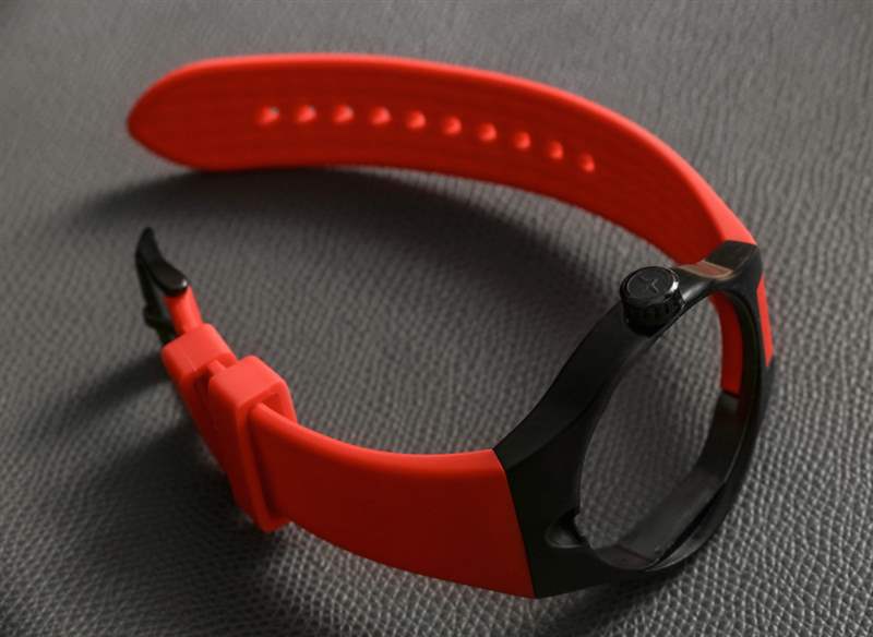 用于操作手表本身的表冠位于表殼 12 點(diǎn)鐘位置,而 3 點(diǎn)鐘位置的表冠實(shí)際上是用于將內(nèi)殼固定到外殼的螺釘。擰下 3 點(diǎn)鐘位置的表冠可讓您輕松取下手表——即使在佩戴表帶時(shí)也是如此。取下內(nèi)殼后,可以將環(huán)形腿從表殼中鉸出來(lái),讓您可以將手表放在桌子上作為小時(shí)鐘。