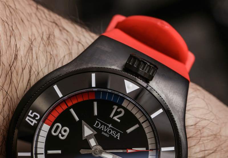 對(duì)于那些不打算用你的手表練習(xí)自由潛水呼吸技巧的人來(lái)說(shuō),有漂亮的顏色可以看,當(dāng)然看起來(lái)像是一系列國(guó)旗顏色(從美國(guó)到法國(guó)等等)。Davosa 否則選擇使表盤干凈和對(duì)稱。沒(méi)有日期,由于面部比例合適,材料和對(duì)比度的使用良好,易讀性非常好。表盤本身可能不如 Apnea Diver 的整體構(gòu)成那么原始,但它工作得非常好。使用刷過(guò)的指針是正確的選擇,我喜歡在時(shí)標(biāo)上使用厚厚的 Super-LumiNova 涂料。外部的“呼吸暫停環(huán)”也被應(yīng)用,因此它有助于給表盤一種很好的深度感。