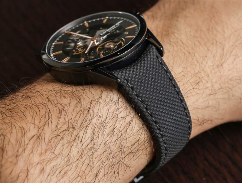 Freelancer RW1212 Skeleton 表殼采用鋼制成,寬 42 毫米,厚 10.6 毫米,防水深度達(dá) 100 米。在表盤以及表殼后部的機(jī)芯上方是藍(lán)寶石水晶。根據(jù)型號(hào)的不同,時(shí)標(biāo)、指針以及機(jī)芯本身都有不同的顏色。我最喜歡的型號(hào)是男性化和技術(shù)參考 2785-BC5-20001,采用 PVD ??涂層黑色精鋼表殼,搭配相配的紡織表帶。天然精鋼表款搭配相配的精鋼金屬表鏈,并配有易于閱讀的藍(lán)色指針和時(shí)標(biāo)。最“成熟”的款式配備棕色小牛皮表帶,并搭配 PVD ??涂層玫瑰金色調(diào)表圈與精鋼表殼。