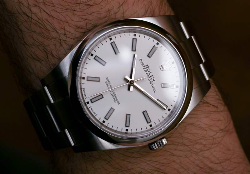 Rolex Oyster Perpetual 39 寬 39 毫米,是 Oyster Perpetual 型號中最大的一款,也有較小的尺寸。作為休閑表或正裝表,39 毫米的直徑是可行的,但如果你想擴(kuò)大到 40 毫米的寬度,你可以多花幾百美元買一塊勞力士 Air-King。勞力士系列中勞力士蠔式恒動 39 最嚴(yán)重的競爭對手(在我看來)是勞力士 Explorer 214270,它共享相同的 39 毫米寬的表殼和機(jī)芯。話雖如此,勞力士將 Explorer 的價格提高了 850 美元,因為 Explorer 復(fù)雜的發(fā)光表盤以及表鏈中包含 Easylink 5 毫米“舒適延長線”。Oyster Perpetual 39 表盤帶有棒狀時標(biāo)和直針,更優(yōu)雅一點,沒有那么運(yùn)動,我認(rèn)為考慮到外觀,它會吸引略有不同的觀眾。廣告訊息廣告信息結(jié)束