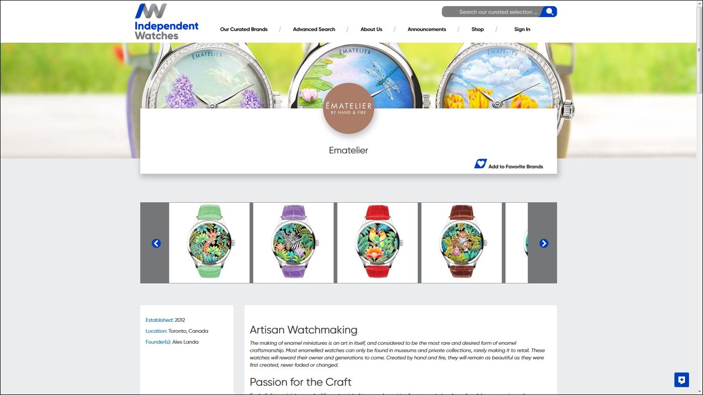 Independent-Watches.com 的目標是減輕發(fā)燒友驅(qū)動的小型手表品牌營銷的持續(xù)復雜性和擔憂,以便他們可以專注于制造更多更好的手表。我們希望那些喜歡平均價格從幾百美元到幾千美元的精品獨立品牌手表的人會來到 Independent-Watches.com 作為了解經(jīng)過質(zhì)量預先審查的新品牌和產(chǎn)品的目的地和團隊的合法性。