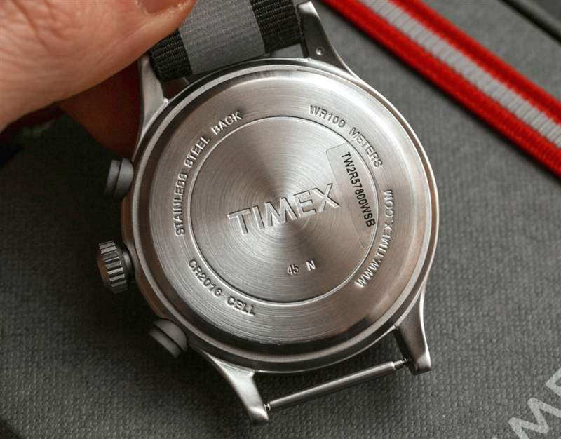 Metropolis Allied 采用相同風格的表殼,但尺寸為 40 毫米寬,奇怪的是只有 50 米的防水性。有人可能會認為,如果 Allied Chrono 有額外的推動器,其防水性能會更小,但在這種情況下,保留是正確的。如果在三針復古軍事外觀中防水性對您來說更重要,那么 Timex 還提供具有 100m 防水性的 Archive Collection Metropolis?Navi Ocean 型號(盡管采用 38mm 寬的表殼和旋轉(zhuǎn)潛水員式表圈) .?與計時碼表機芯不同的是,這款三針機芯的聲音稍大一些(雖然沒有標準的 Swatch 響亮),對于那些想要靜音時計的人來說,這一點很重要。
