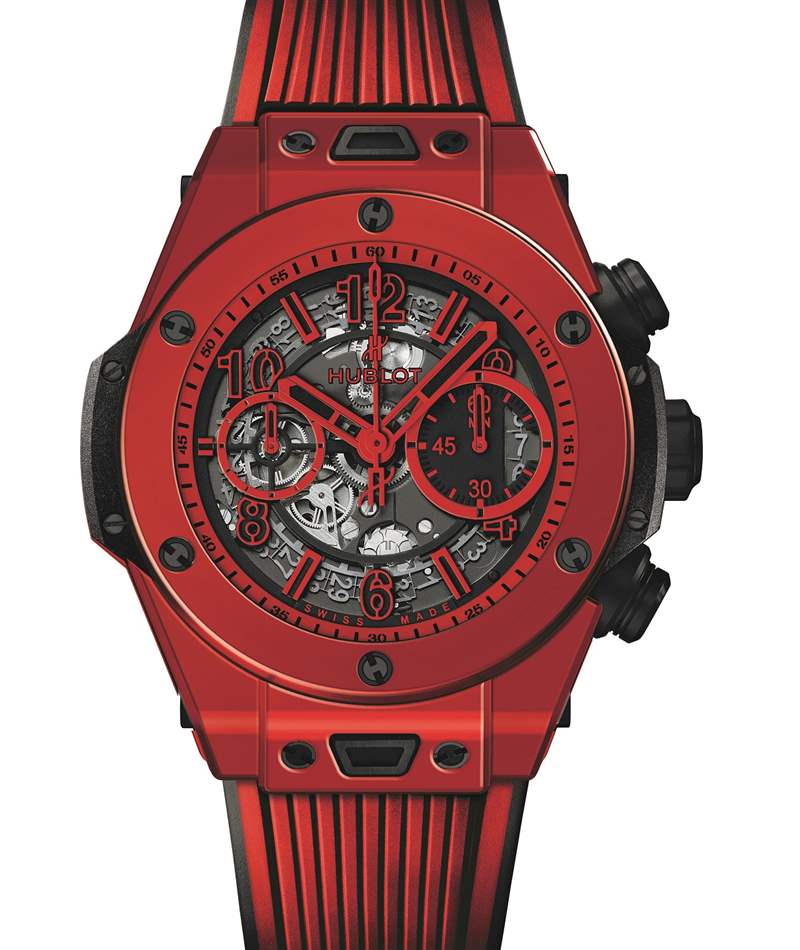 得益于宇舶表及其材料工坊,紅色陶瓷得以誕生。在 2018 年巴塞爾鐘表展上,瑞士宇舶表將推出首款紅色陶瓷表殼腕表,型號為 411.CF.8513.RX 宇舶 Big Bang UNICO Red Magic,限量 500 枚。Big Bang UNICO Red Magic 采用黑色和紅色,配備紅色陶瓷表圈和表殼。你問有什么大不了的?這一切都在顏色中。