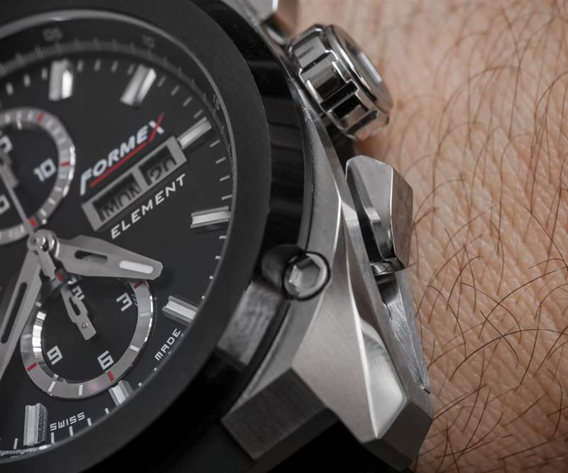 先說一下手表整體的設計,再談表盤的細節。Formex 似乎特意讓 Element 手表看起來很熟悉(以現代、男子氣概、運動手表的方式),并具有足夠的獨創性,因此它實際上看起來并不像其他任何東西。結果是我認為很多新手表愛好者都會感興趣的設計,但大牌手表的愛好者可能會希望設計更具獨創性。充其量,Formex 提供了“嬰兒 Hublot”的外觀,具有許多相同的視覺主題,成本不超過 Hublot 的 10%。