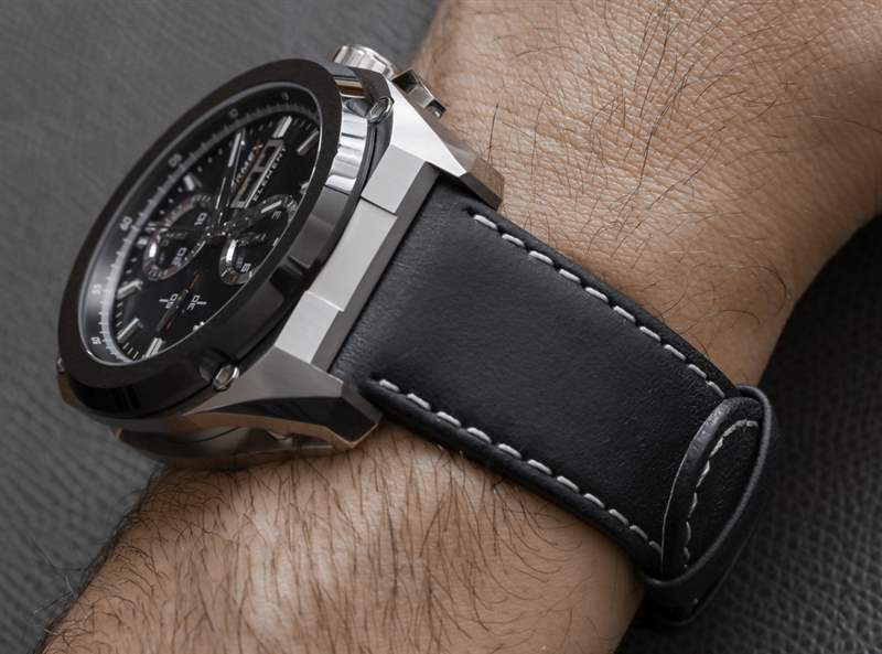 黑色陶瓷表圈也經過對比處理,上部經過拉絲處理,而斜面則經過拋光處理。陶瓷比鋼更耐刮擦,這是您想要它的主要原因。由于黑色,它的風格還有一個額外的好處。同樣,如果您喜歡更統一的表殼外觀,Element 也提供鋼制表圈。