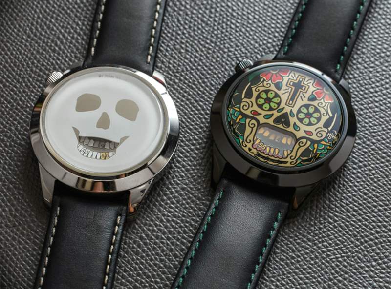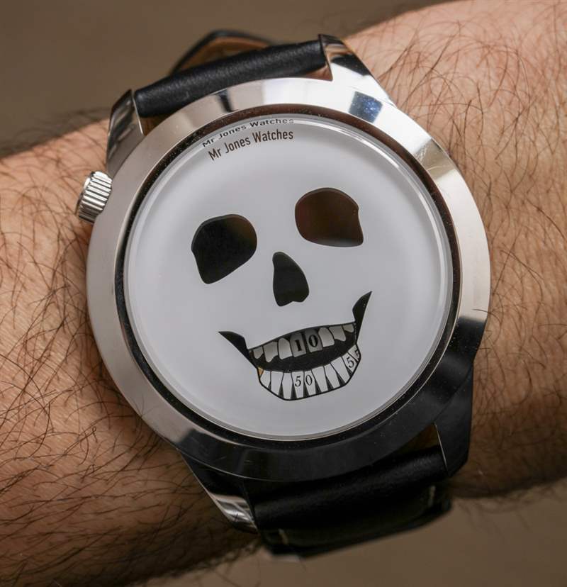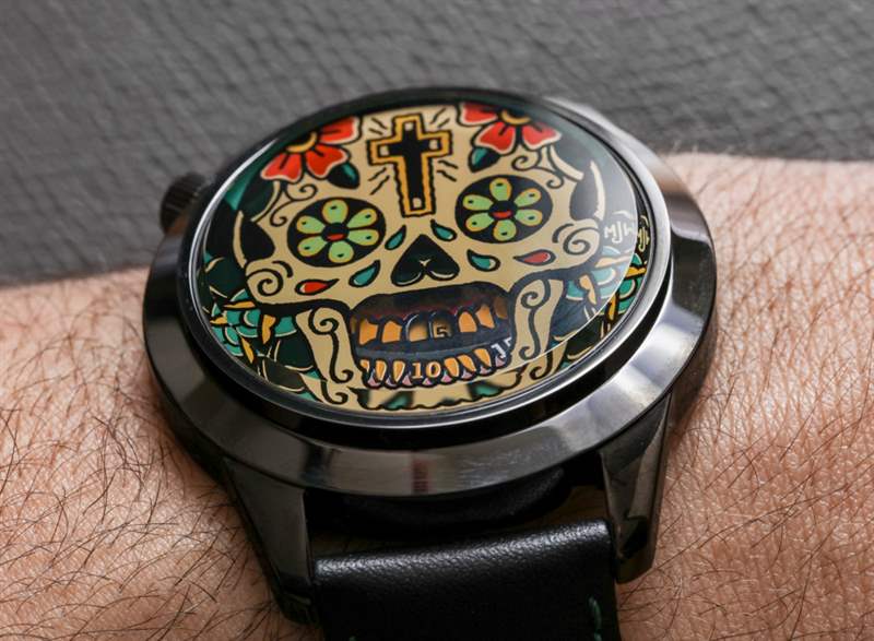 我記得在 2017 年早些時候,他在倫敦的品牌歡迎小店與 Jones Watches 先生的創始人 Crispin Jones 會面。我向他提到的一件事是制造更大版本的手表可能具有的價值。該品牌當時最大的時計為 40 毫米寬——盡管他們的大多數流行款式仍然只采用該品牌的 37 毫米寬表殼。現在接近 2017 年底,Mr. Jones Watches 似乎接受了建議,45 毫米寬的 MJW The Last Laugh XL 和 Last Laugh Tattoo XL 就在這里。在手腕上,我覺得我之前的建議得到了驗證,因為我認為這些 XL 手表以更大、更現代的方式捕捉了手表主題的吸引力,這將為新佩戴者打開品牌。