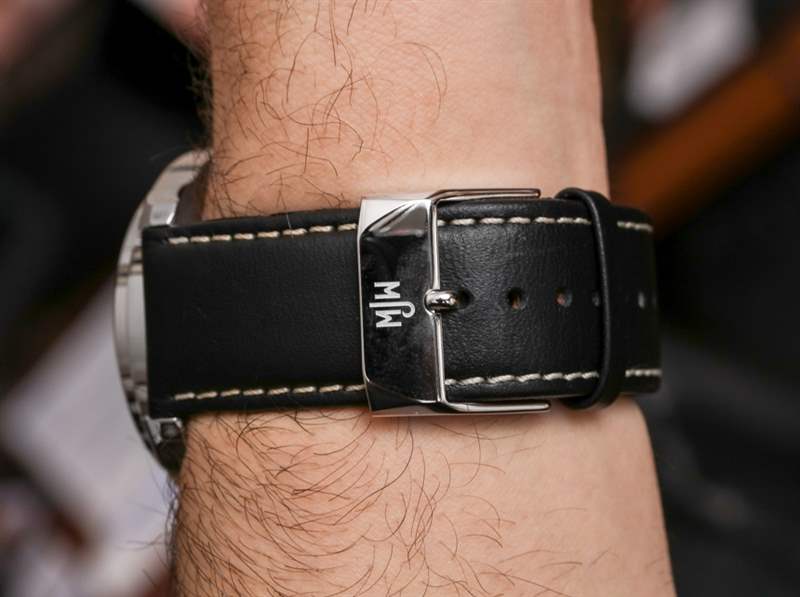 與這些手表的 37 毫米寬版本不同,45 毫米寬的 XL 表殼具有不同的造型,既簡單又耐磨。精鋼材質搭配粗拋光表圈,表冠置于 10 點鐘位置,以優化佩戴舒適度。防水深度達 50m,表殼厚 13mm,表盤上有藍寶石水晶(這肯定是一個受歡迎的元素)。