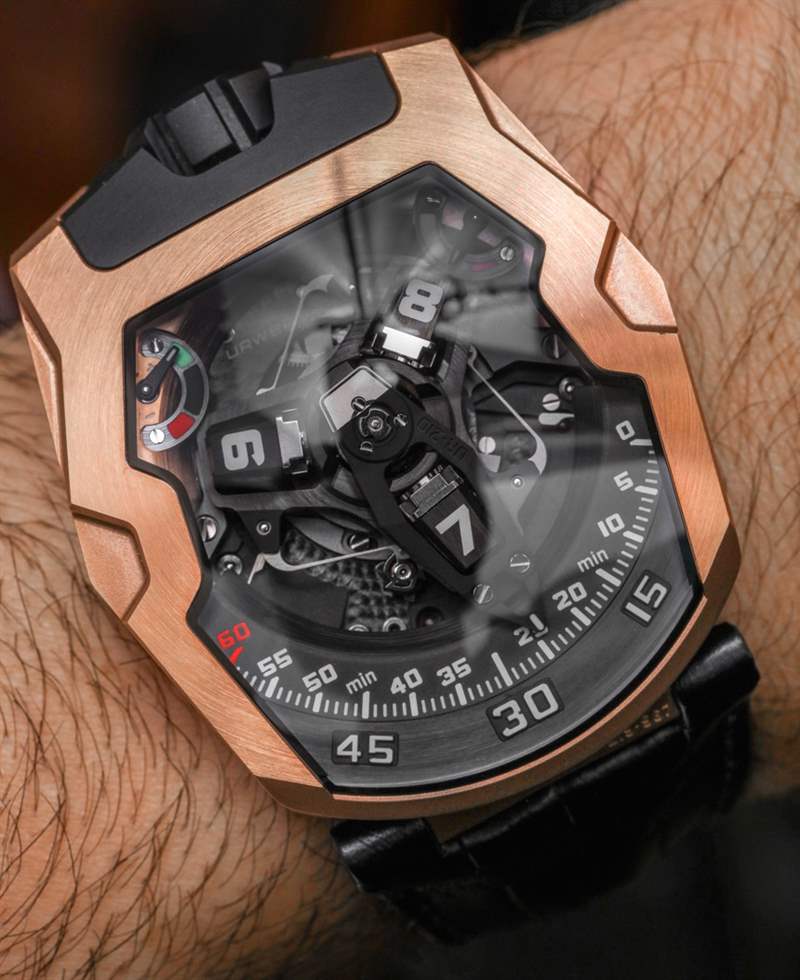 首次亮相于 2012 年,這將是目前在 aBlogtoWatch 上發表的關于Urwerk UR-210 手表型號的第八篇文章,也是第一次完整的評論。在我的手腕上是Urwerk?UR-210 RG,“RG”代表 18k 紅金——主要的表殼材料。我們介紹的最新版本的 UR-210 是一款有趣的獨特(獨一無二的)型號,稱為Urwerk UR-210 Amadeus??,它擁有完全手工雕刻的表殼和表鏈。
