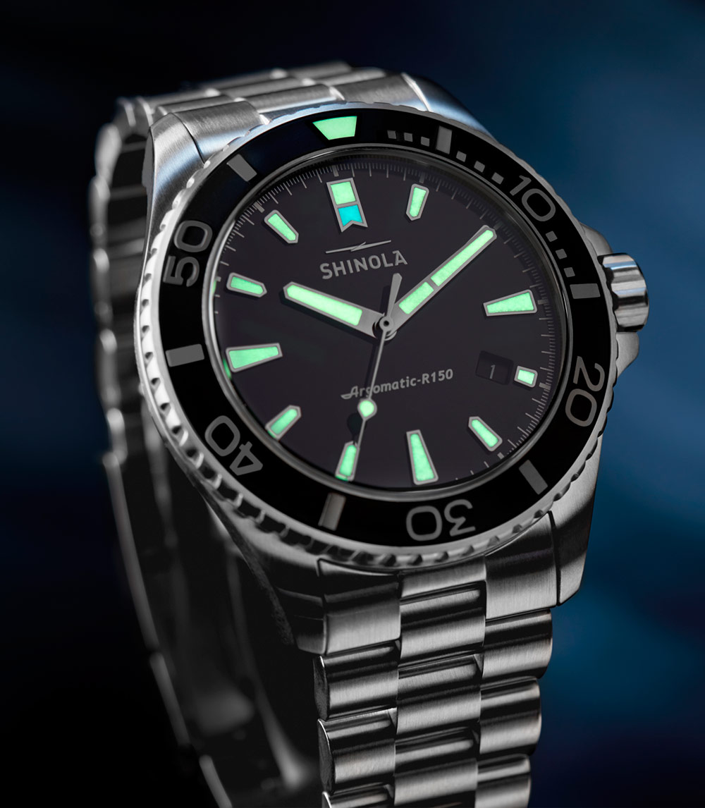 對于擁有六年歷史的 Shinola 品牌來說,這是一大步,因為現在他們可以聲稱,除了石英機芯,他們的團隊還可以使用 Ronda 組裝的機械機芯。Shinola 早就暗示了基于機械機芯的手表,而 Shinola Lake Erie Monster 潛水表就是第一個。它還展示了潛水式運動手表的持久力量,既吸引了傳統手表愛好者,也吸引了代表絕大多數 Shinola 客戶的美國手表消費者。