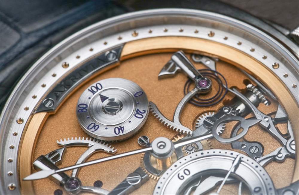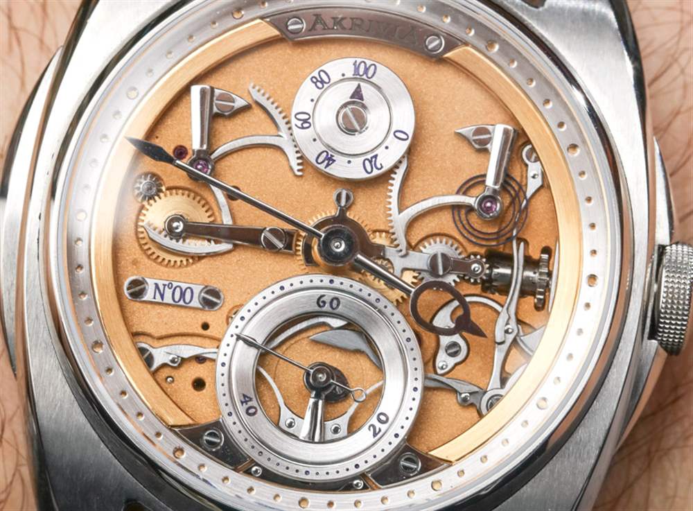 幾乎所有關于 AK-06 機芯的設計都是為了美觀和實用。機芯平衡的表盤視圖以巧妙的主要機芯部件布局為特色,同時讓擺輪保留在手表背面。AK-06 機芯的表盤和表殼背面令人印象深刻,并且在視覺上也與眾不同。表盤設計有一種受歡迎的蒸汽朋克氛圍,這得益于各種顏色和形狀,都增加了視覺趣味。制表師和 AkriviA 創始人 Rexhep Rexhepi 真的全力以赴,確保他最簡單的手表也可以說是他迄今為止最漂亮的手表。這也可以說是 2017 年最重要和最令人向往的新手表機芯之一。