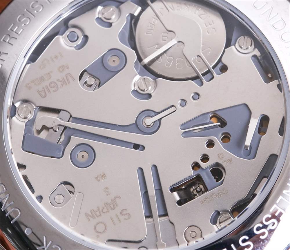 內部機芯是 SII(精工)口徑 VK61(VK61A)石英“混合”計時機芯。有時您將其視為“機械石英”或“機械石英”。這是什么意思?嗯,這基本上意味著手表是電池供電的,并且有一個石英調節器,但它也有移動齒輪和類似于純機械機芯的部件。這意味著不僅僅是數字元素。這并沒有真正讓這樣的機芯更有趣,因為大多數帶指針的石英機芯都帶有機械元素。我只是為那些看到這種語言并覺得這里有什么特別之處的人說這些。您需要知道的是,Undone Urban 計時碼表內部裝有可靠且體面的日本石英機芯。