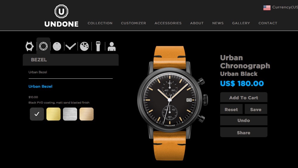 Undone Urban 系列的部分魅力在于,您可以訂購帶有現成設計的“固定”模型,也可以使用該品牌的在線個性化工具來配置您喜歡的設計。這樣做只會略微增加價格,增加 30 美元——這基本上不算什么,因為他們會為您單獨制作。個性化工具有許多有用的選項,從表殼處理到指針、表盤和表帶顏色。還有一個選項可以讓您的名字出現在表盤或底蓋上——這很酷。這在值得定制的手表中很容易,因為選項很有趣,最終結果完全物有所值。