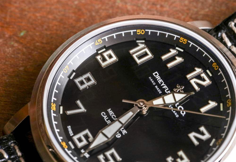 Dreyfuss & Co. Series 1924 Calibre 39 基于早期航空手表的設計,您可以在價格高得多的時計中看到類似的設計。因此,從很多方面來說,這是獲得這種風格手表的最低價格方式之一(想想真力時)。在這里,這意味著半光黑色表盤帶有凸起的風格化阿拉伯數字時標,并涂有相當水平的發光度。您還擁有相當寬大的時針和分針,它們的尺寸適當,并且共同構成了出色的易讀性。這也有助于表盤上的藍寶石水晶在兩面都涂有 AR 涂層,這消除了很多討厭的眩光(哦,我多么討厭手表上的眩光……)。廣告訊息廣告信息結束