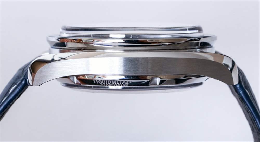 這在很大程度上與表殼的三明治式結構有關,以及各個部件(表圈、中殼、表背)具有不同寬度的事實。盡管尺寸很大,但表殼總體上非常舒適(如果佩戴舒適)并且在手腕上很有吸引力,并且它的細節確實值得仔細檢查。表殼防水深度達 100 米,兩端均配有藍寶石水晶鏡面,展示底蓋可讓您欣賞到漂亮的自制機芯。