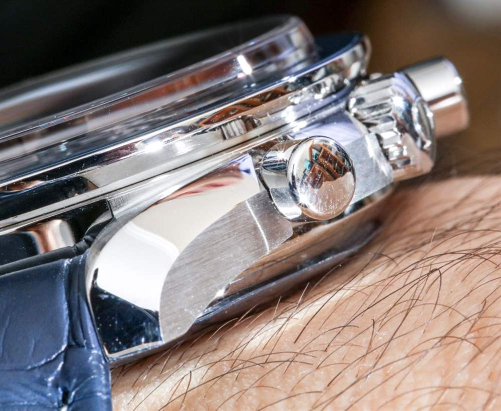 精鋼版腕表的圓盤上印有栩栩如生的月亮圖案,而金質和鉑金版則配有帶紋理的月相圓盤,呈現出不同的外觀。白金版本的手表甚至在日期指針所在的位置有一個小的放大鏡盤。這很酷,但我記得歐米茄說這個零件制作起來非常痛苦,以至于他們無法制作出非限量版。有關 Omega Speedmaster Moonwatch Co-Axial Master Chronometer Moonphase Chronograph 貴金屬外殼版本的更多信息(這個名字太長了,每次打字都快累死我的手指了),請參閱我們之前的更全面的動手文章集合鏈接到上面。