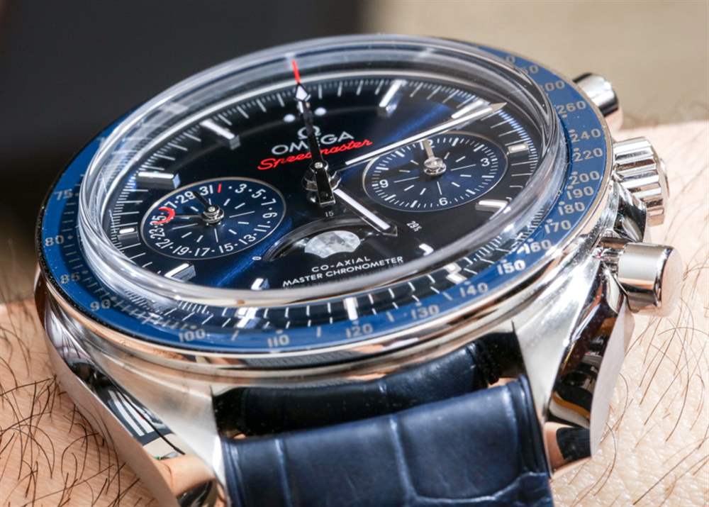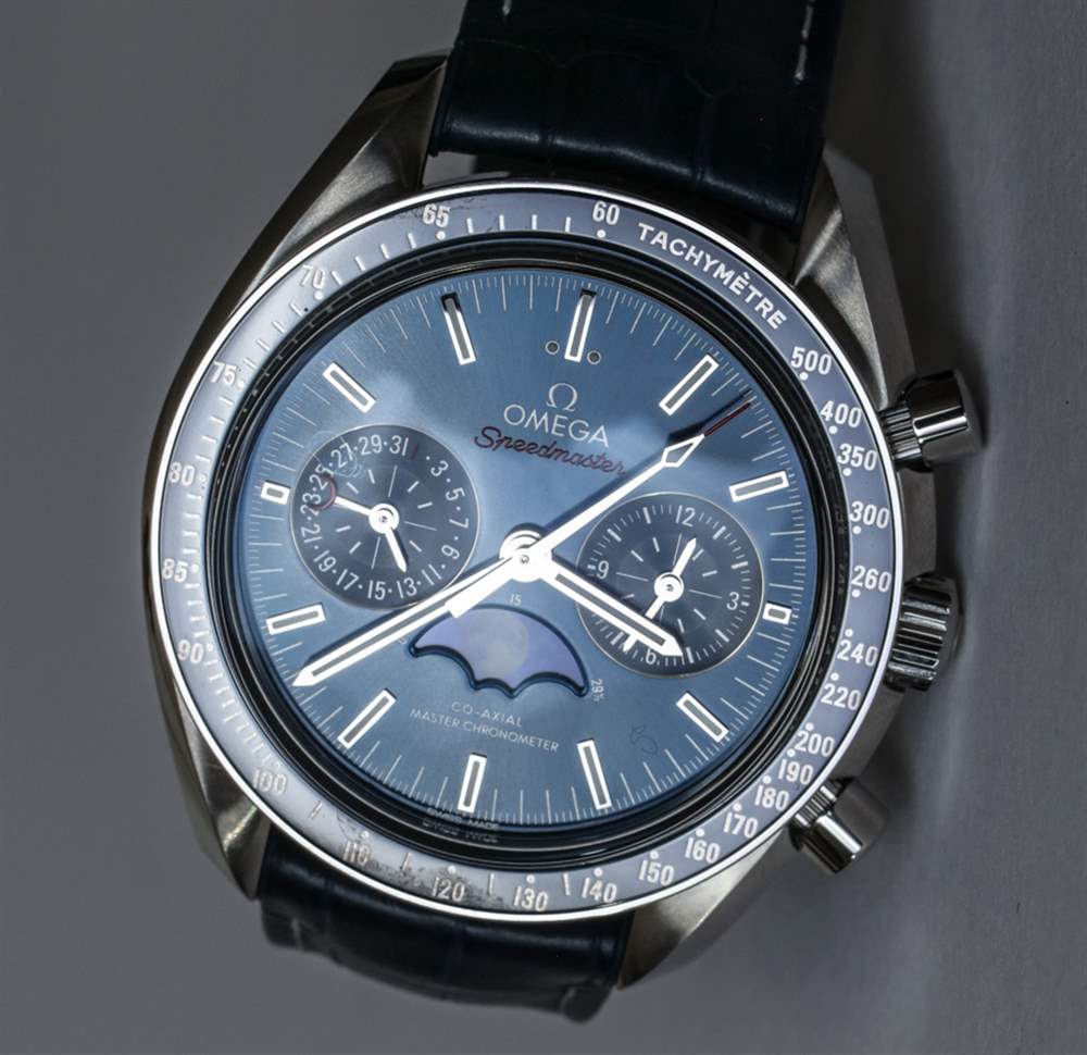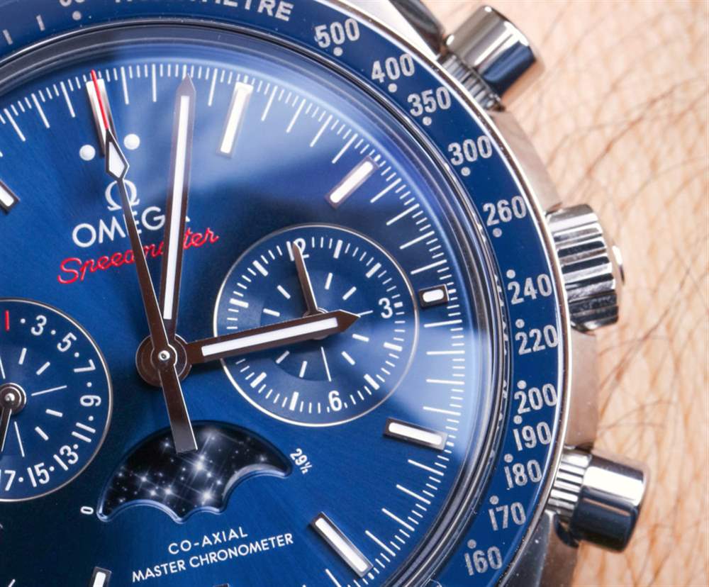 歐米茄 Speedmaster Moonwatch Co-Axial Master Chronometer Moonpahse Chronograph 采用 9904 型機芯(也為 9905 配備用于貴金屬版本的黃金部件)機芯,這是第一款為 Speedmaster 系列提供同軸至臻天文臺表的機芯。2017 年,歐米茄將在歐米茄超霸同軸至臻計時碼表系列的其余產品中推出不帶月相復雜功能的 9900 機芯。您購買這款特殊手表的原因是因為月相指示器以及它具有同軸至臻天文臺自動機芯的事實。