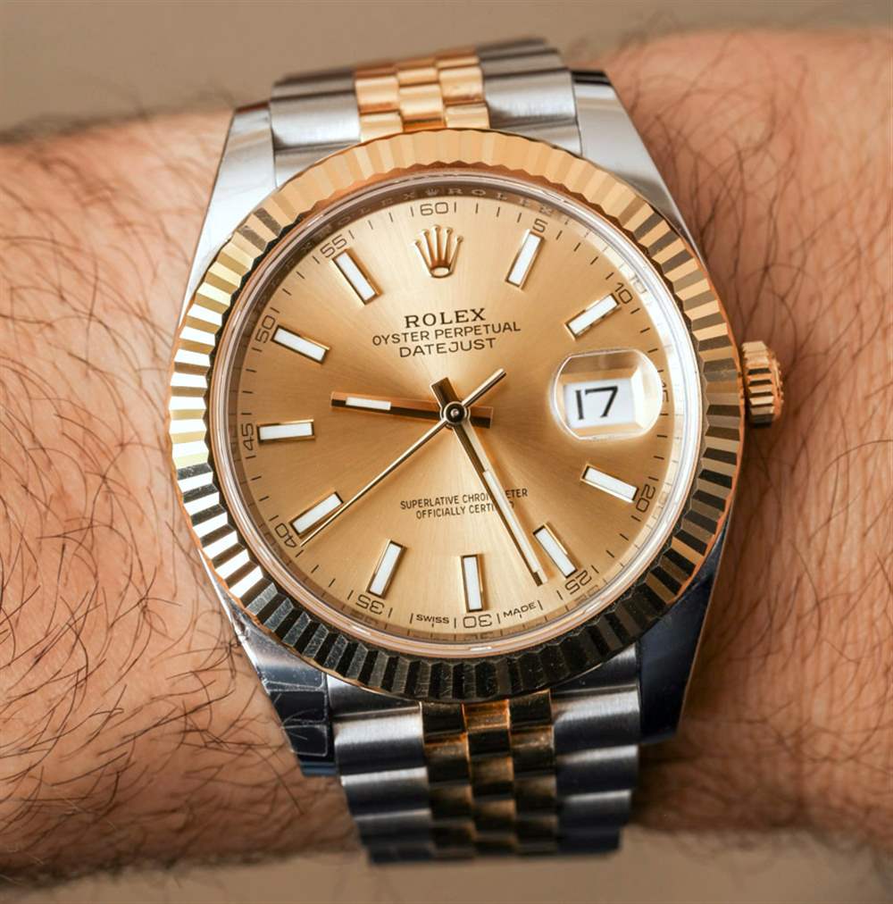 讓追蹤勞力士日志型更復雜的是表盤、表圈和表鏈選項的多樣性。盡管勞力士首次推出 Datejust 41 時僅采用雙色(他們稱之為“Rolesor”)變體,而不僅僅是鋼,但您可以選擇鋼和黃金或鋼和永恒玫瑰金,在兩個表鏈選項之間進行選擇(Jubilee 或 Oyster),以及兩種金色變體之間的總共十個表盤選項,最后但并非最不重要的是,選擇拋光的“扁平”表圈或凹槽表圈,如圖所示。我只能說,如果您對勞力士 Datejust 41 感興趣,請務必做好功課并確定適合您的特定變體。