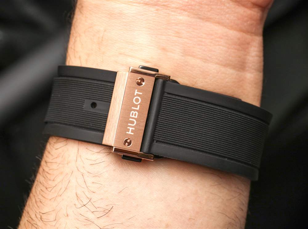 我很喜歡 Big Bang 風(fēng)格的拉絲指針,它提供了不錯的易讀性,尤其是在 King Gold 版本中,這要歸功于增加的對比度。我不是鏤空日期顯示的忠實粉絲,但這個還不錯。盡管表盤本質(zhì)上是不對稱的,但我確實覺得各種元素在很大程度上是相當(dāng)平衡的。然后你有超過 6 點鐘的月相指示器窗口,它以自己的方式被鏤空,因為半透明的圓盤用來隱藏圓盤的“不可見”部分。