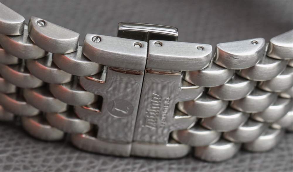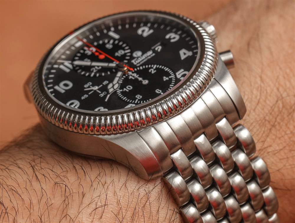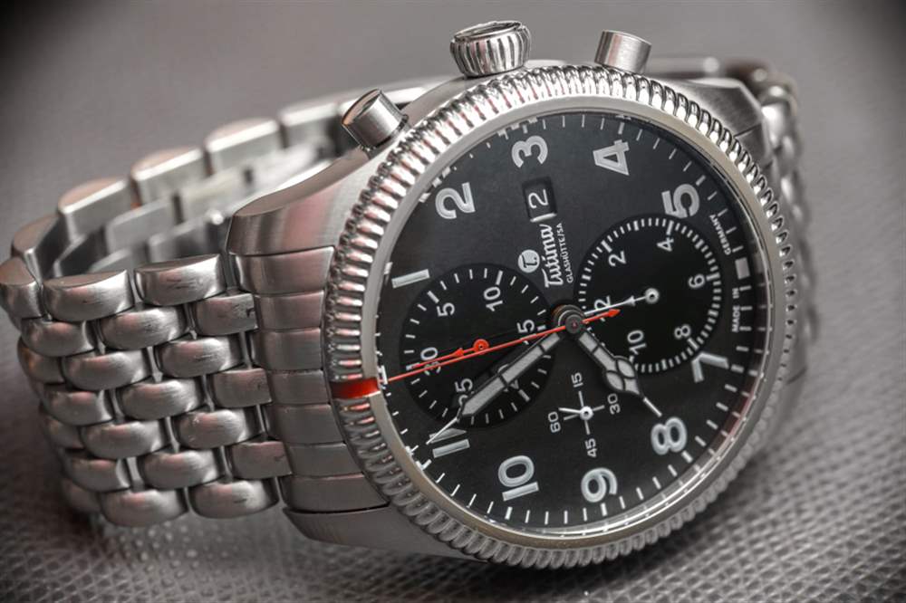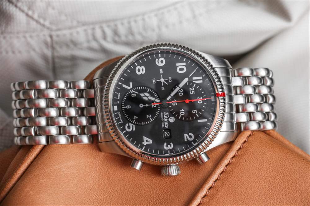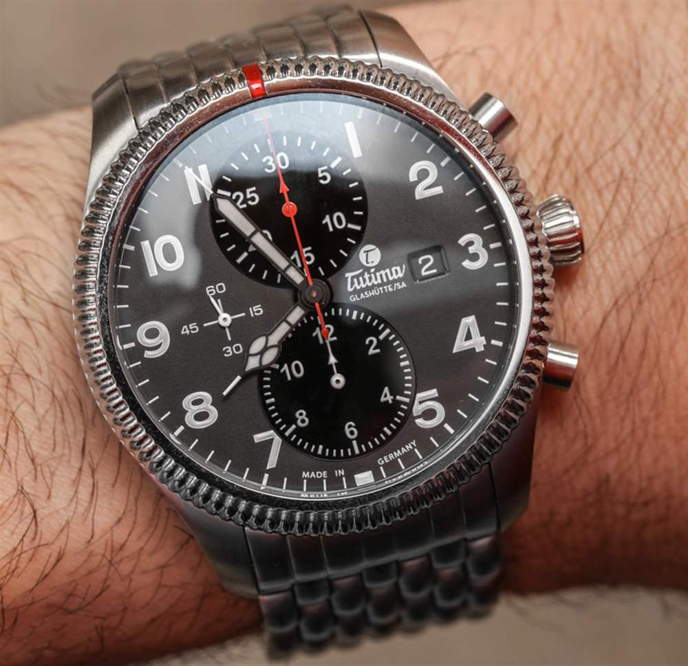 紅色的強調(diào)色也是一個重要的風格提示,謝天謝地,這種顏色的使用相當謹慎。計時碼表秒針和分針表盤使用紅色,但計時碼表時針不使用紅色。我相信這是有充分理由的,但通常在顏色編碼指針方面,時間指針是一種顏色,而計時指針是另一種顏色。因此,雖然 Tutima 渲染 Tutima Grand Flieger Classic Chronograph 表盤的方式在美學上看起來更好,但我的強迫癥告訴我計時碼表時針也應(yīng)該是紅色的。