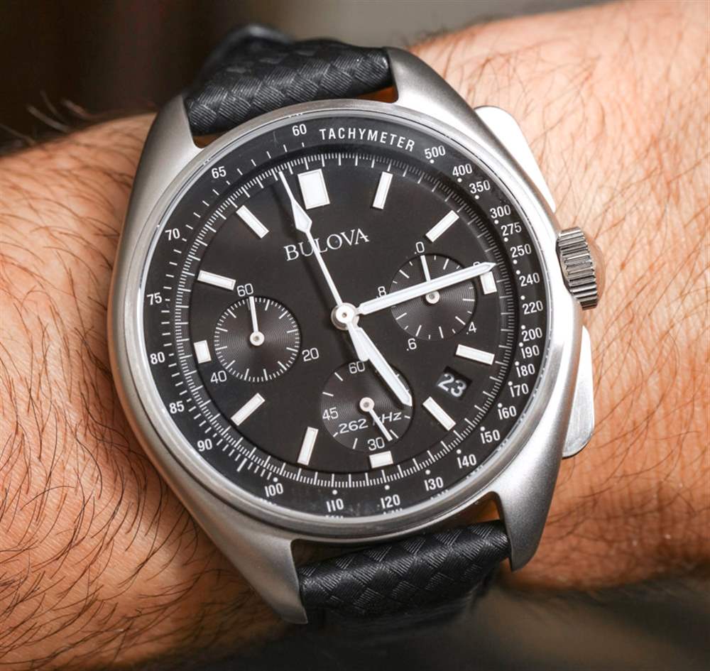 Bulova 歸日本西鐵城集團所有,雖然西鐵城手表不共享它們的機芯,但您可以確保 Bulova 特別版月球計時手表內(nèi)部的“高性能”石英機芯質(zhì)量上乘。查看手表的表盤,您會在小秒盤上看到一個“262 kHz”的名稱標簽。對于那些不熟悉寶路華時計系列的人來說,這應(yīng)該是第一次暗示手表內(nèi)部有一些特別之處。