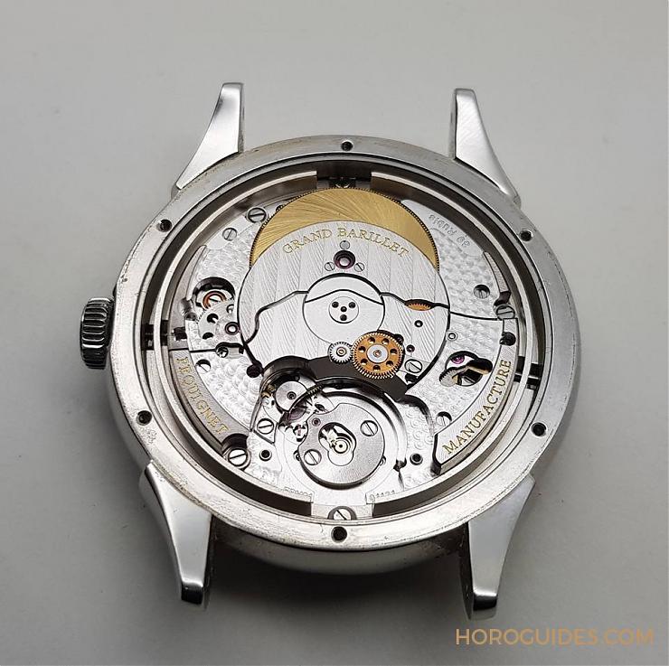 取下自動盤可見大發條盒,擁有72小時動能。