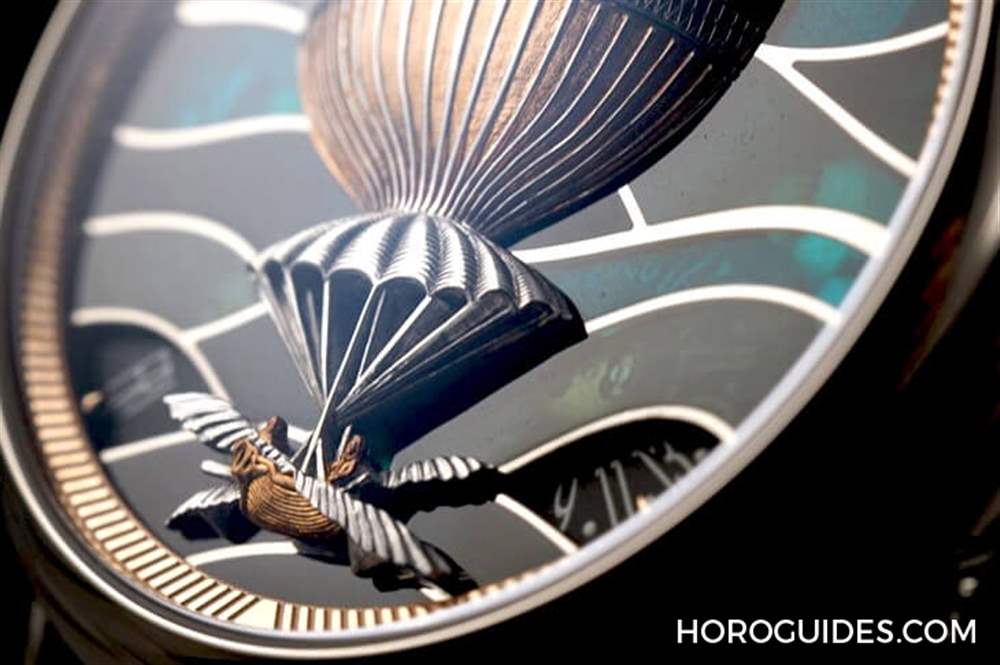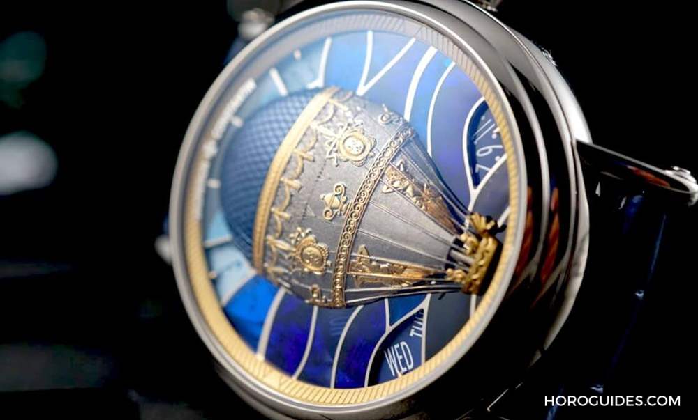 江詩丹頓的Métiers d’Art藝術大師系列,其工藝之精、主題背景之壯闊,堪稱是表界眾多工藝表中真正可以被稱得上是藝術作品的系列。2018年的新作品以金雕為重點工藝,結合琺瑯彩繪,推出Les Aérostiers熱氣球腕表,系列五款腕表各限量5只。