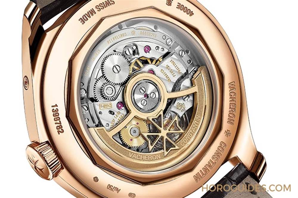 招牌的馬爾他十字標志融入新機芯搭配的自動盤,江詩丹頓并做了鏤空設計。