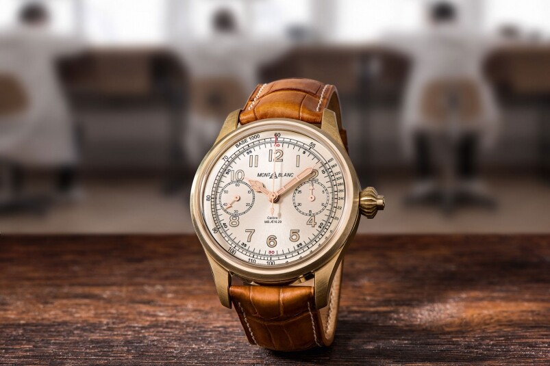 無可否認Montblanc 這枚銅表正經斯文,一改銅表的豪邁形象,甚至襯上正裝西服也毫無違和感。腕表另一賣點是單按鈕計時功能,搭載的MB M16.29機芯源自三十年代Minerva表廠的懷表機芯,翻至表背可欣賞機芯精密的結構。
