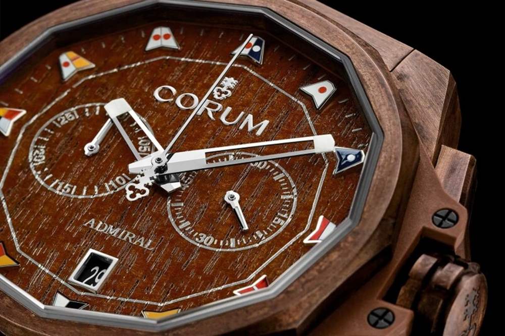 本來銅殼會隨時日而泛起一層綠銹,Corum這枚卻與別不「銅」,腕表在出廠前,青銅表殼先經品牌研發的古色處理,之后再覆上保護層,將銹綠的顏色及紋理固定。設計用意無非是讓心急的用家不用戴上三幾年,現在即時可擁有青銅表殼的古舊質感。