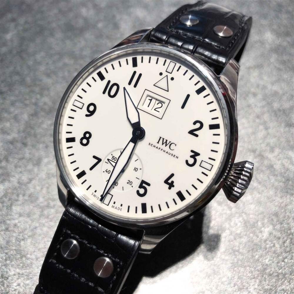另一款是我一見愛上的IWC Big Pilot’s Big Date 「150周年」特別版,最喜歡的是這白色漆面的版本,黑色時標在表盤上猶其突出!而由于是大日期視窗,所以表盤比較簡潔,也令表盤更搶眼,而其實今回是IWC首次將Big Date放入Big Pilot’s 系列,所以特別有新鮮感,如果是一直都恨買Big Pilot’s而又未買,這款絕對要留意,因為也只是限量100枚!