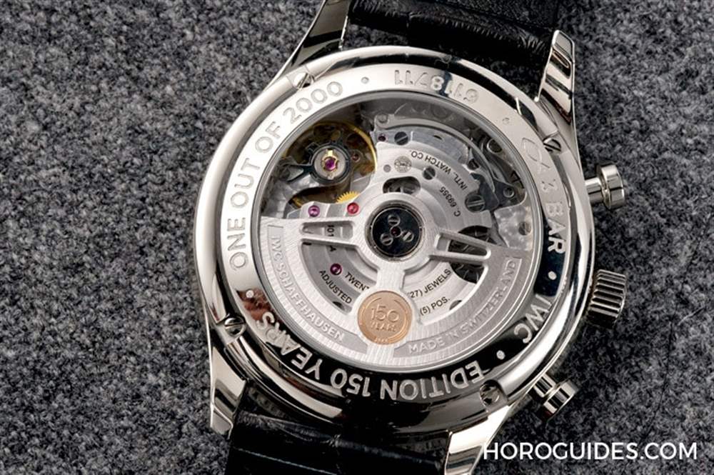葡萄牙系列另有一款搭載89系自制機芯的經典版計時碼表,特色在于12點鐘計時時分盤同軸的設計,相對起來79系機芯自然價位較高。而現在79系有了替代的69系,入門款的葡萄牙計時也搭載了自制機芯,表款也開了透明底蓋,可以看到導柱輪裝置,以及鏤空自動盤上的150周年徽章。白面與藍面款各限量2000只。