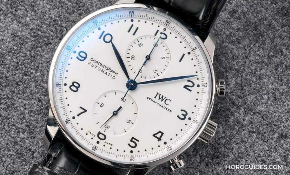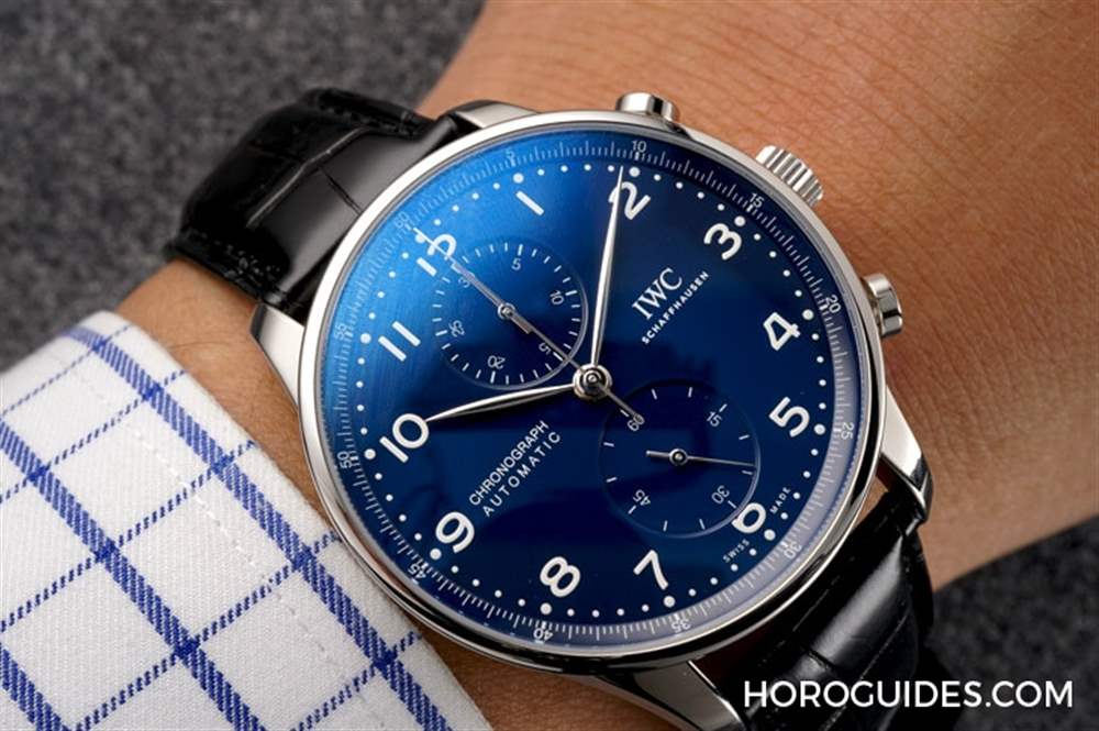 IWC萬國表的Portugieser葡萄牙計時碼表一直以來都是受到歡迎的款式,在品牌150周年之際,也選擇針對這個熱門款式推出了周年的紀念版。論外觀,和之前的葡萄牙計時幾乎完全沒什么兩樣一一但話說回來,葡萄牙計時碼表其實一直就都是這樣的設計一一細致的柳葉針、印刷體阿拉伯數字時標、軌道式刻度,渾圓的表殼以及圓形略小的計時功能按把,差別通常只會做在表盤以及指針顏色的不同,白面、藍面、黑面,部分特別版則會做特殊的熊貓面。
