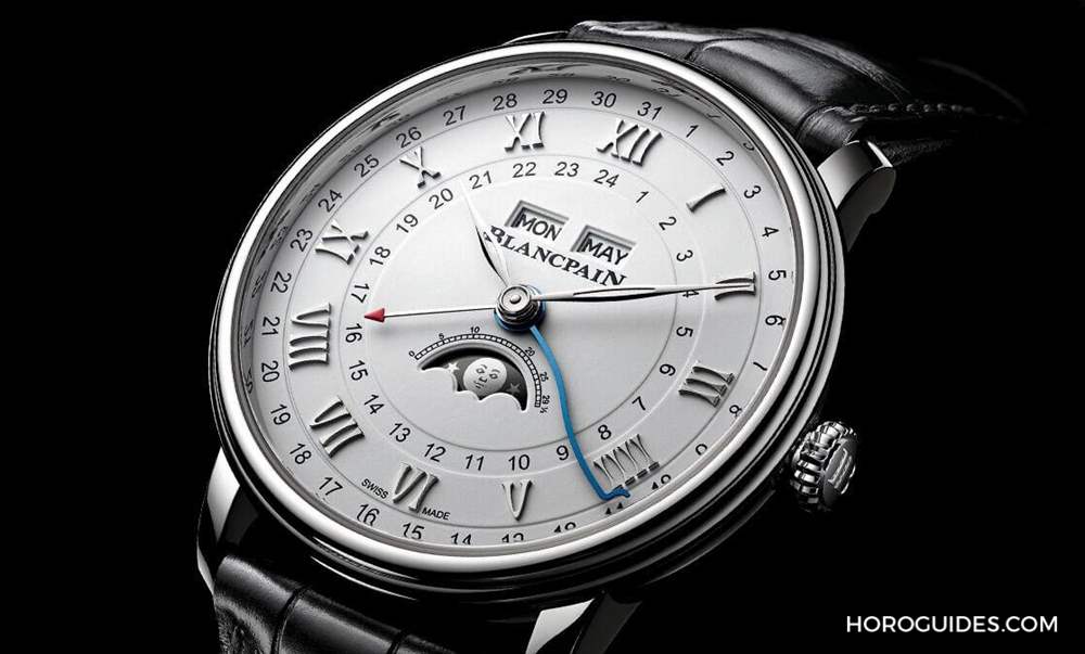 寶鉑Villeret系列近幾年延伸產品價位帶,在數款復雜功能推出不銹鋼款式,自GMT年歷、日期星期腕表之后,2002年首度亮相的兩地時間全日歷腕表,’18年也將推出不銹鋼材質,并且搭配寶鉑專利的表耳隱藏式調校裝置。