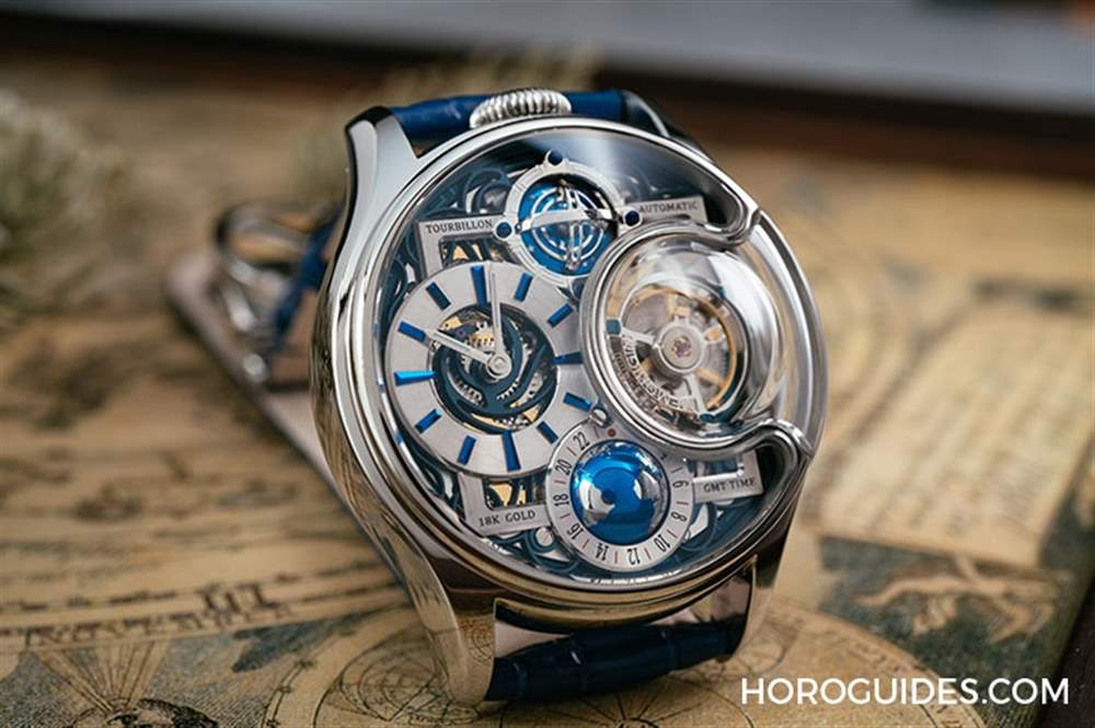 陀飛輪+立體地球GMT兩地時間顯示,再搭配一體成型的不規則藍寶石水晶玻璃表鏡,以及融入中國元素的設計巧思,要是掛上以瑞士為首的高級鐘表品牌,沒有7位數起跳絕不可能入手,然而在萬希泉MEMORIGIN星恒系列中以不過20萬臺幣左右的定價,顛覆你對高階功能云端價格的刻板印象。