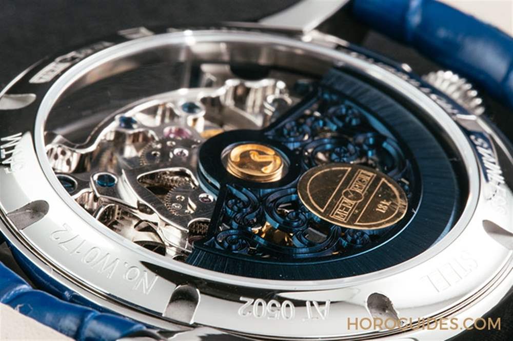 星恒系列尊爵版搭載了AT0502 陀飛輪機芯,提供40 小時動力儲存,每小時振頻達28,800次, 相較于一般陀飛輪多在21,600轉,萬希泉采用高震頻的陀飛輪機芯。