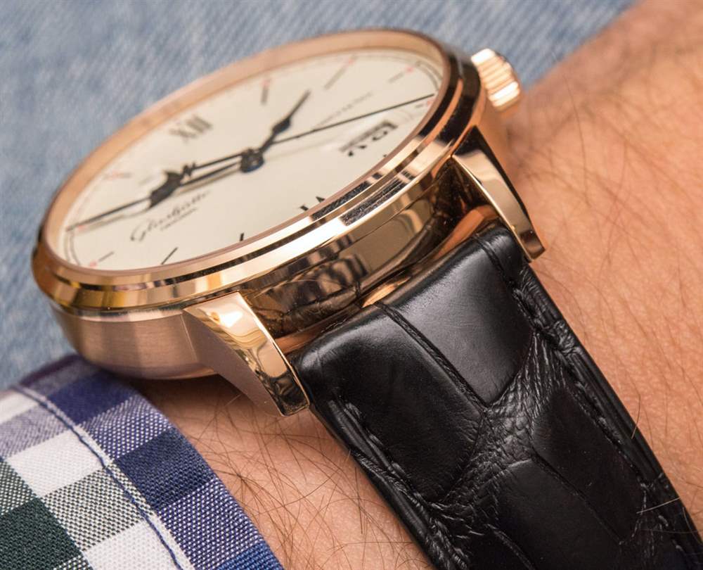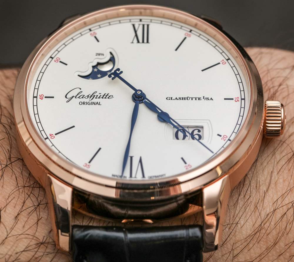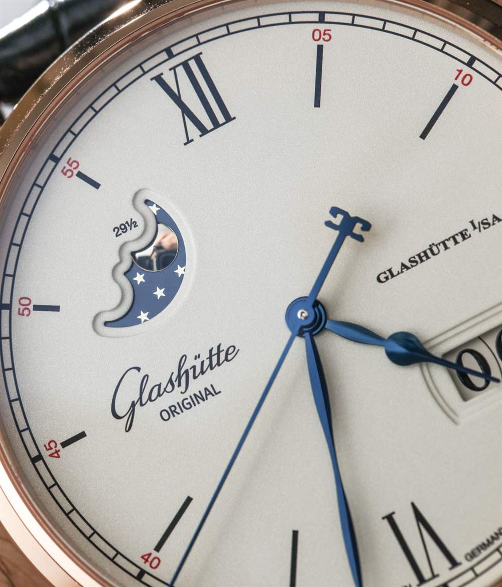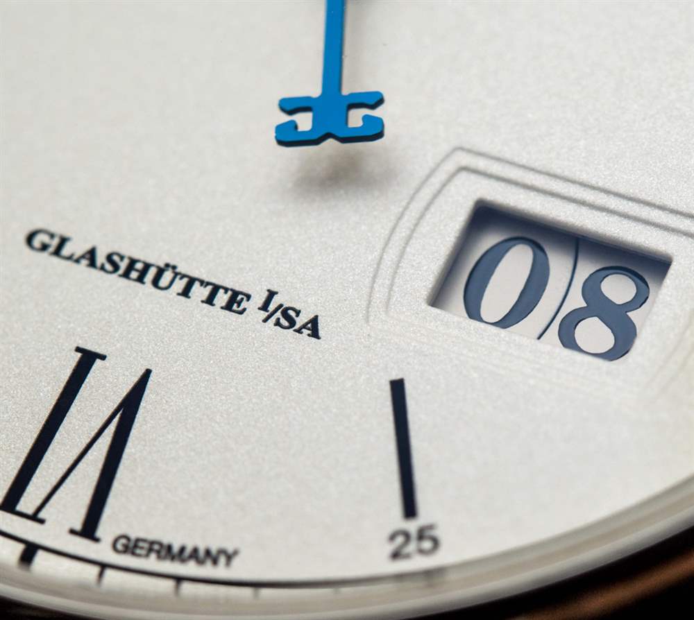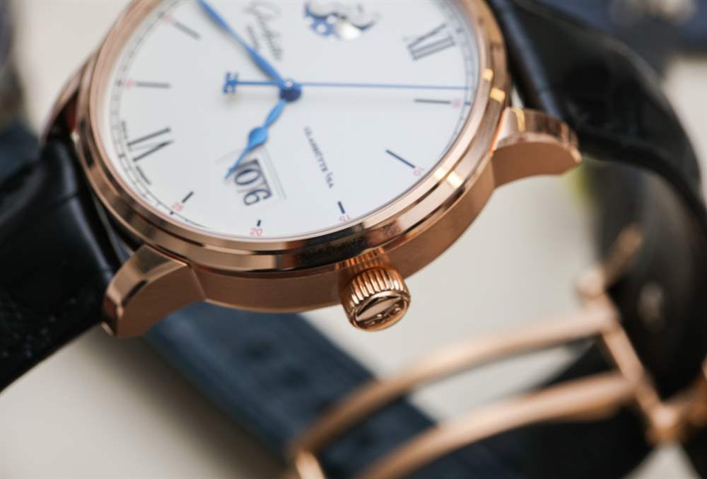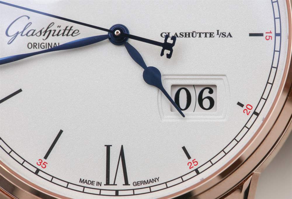 其他受歡迎的設(shè)計(jì)元素是對表盤設(shè)計(jì)的微調(diào),略顯精致,非常帥氣。藍(lán)鋼指針尺寸完美,一切清晰易讀。部分原因是格拉蘇蒂原創(chuàng)在幾年前收購了他們的 Pforzheim 表盤供應(yīng)商,并嚴(yán)格控制表盤生產(chǎn)(包括日期輪等),以最大限度地提高表盤的美觀和易讀性。請注意紅金表款表盤上的紅色點(diǎn)綴,營造出漂亮、略帶運(yùn)動感的個性。對我來說,這個元素提醒我,這些不僅僅是漂亮的手表,也是德國手表傳統(tǒng)中的工具。