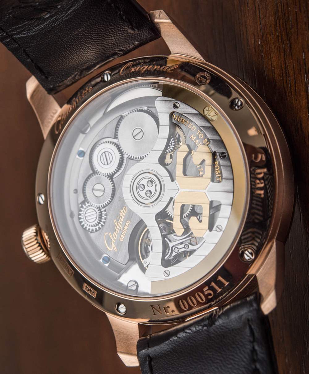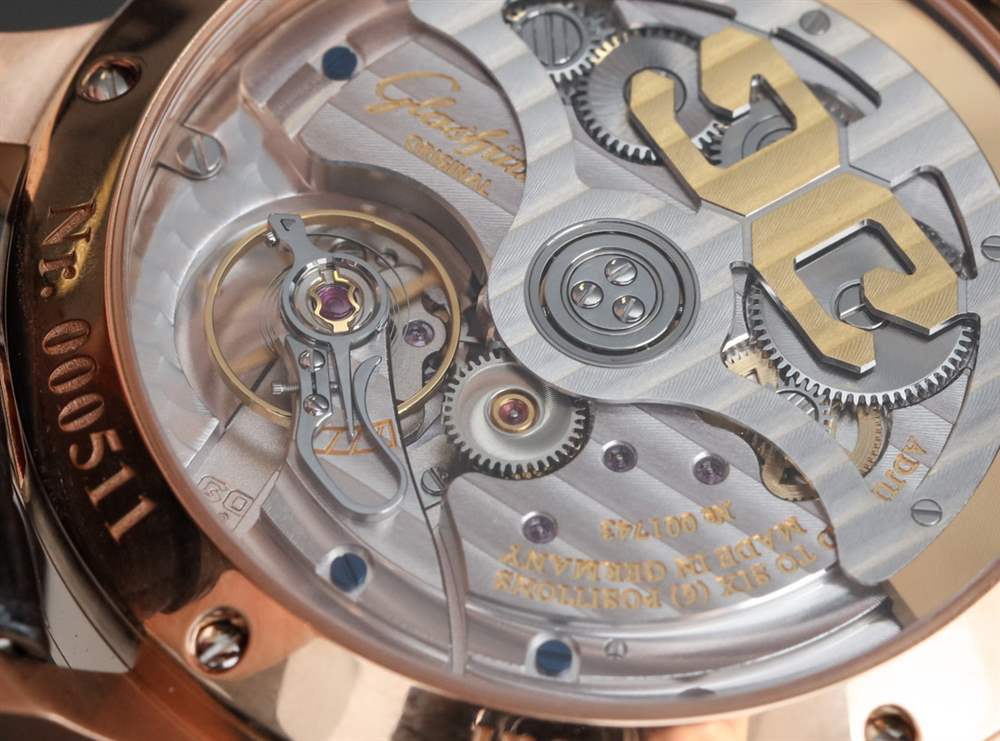 以前的非“卓越”型號有 Calibre 100-03 和 100-04。這可能很快就會被淘汰,我完全期待格拉蘇蒂原創(chuàng)繼續(xù)讓 36 型機(jī)芯進(jìn)行更多運(yùn)動。我認(rèn)為人們會欣賞的一件好事是,現(xiàn)在大日期和月相指示復(fù)雜功能都設(shè)置在表冠上,因?yàn)榍度胧奖須ぐ粹o已被取消。對此表示贊賞,因?yàn)樗拐{(diào)整手表更加方便,并且表殼整體更美觀。