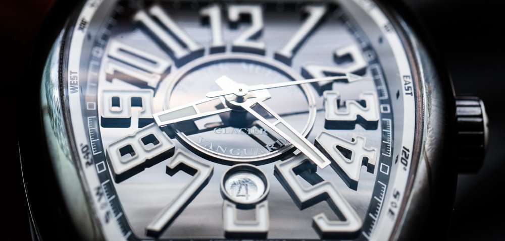 這些三指針 Franck Muller Vanguard 系列手表內部裝有 FM 0800 自動機芯,以 4Hz(28,800 bph)的頻率運行,動力儲存為 42 小時。我不相信這些是自產機芯(Franck Muller 確認這些是經過修改的瑞士 ETA 機芯),但在其他 Franck Muller 手表中,它們當然配備了自己的機芯。機芯提供時間和日期(顯示在 6 點鐘位置)。沒有展覽底蓋,我想手表上應該有。這比在機械結構不那么復雜的手表上寫“復雜功能大師”更有意義。Franck Muller Vanguard Glacier 本身并不是限量版,但它是一款單獨編號的手表,序列號位于底蓋上。