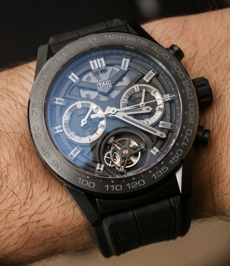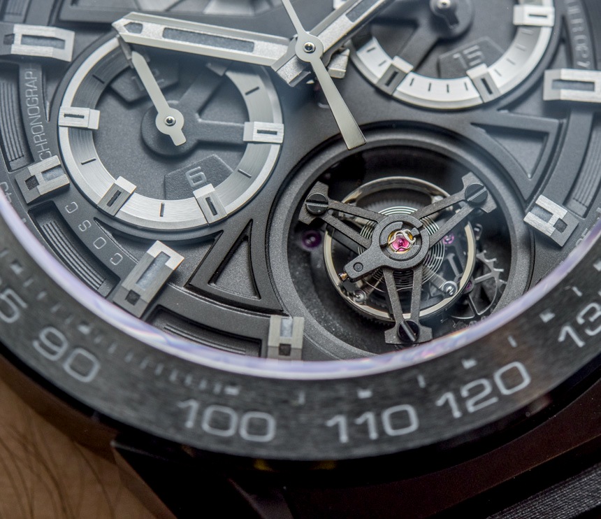 說到陀飛輪手表價格等富人問題,泰格豪雅在花式和異國情調的陀飛輪方面更有歷史。回到僅僅一年前的 2013 年,該品牌推出了一個概念(我相信已經賣給了一些收藏家)與泰格豪雅 MikroPendulumS(在這里動手),除了其他工程壯舉外,還包括兩個陀飛輪。我很確定這些產品的價格超過 200,000 美元。