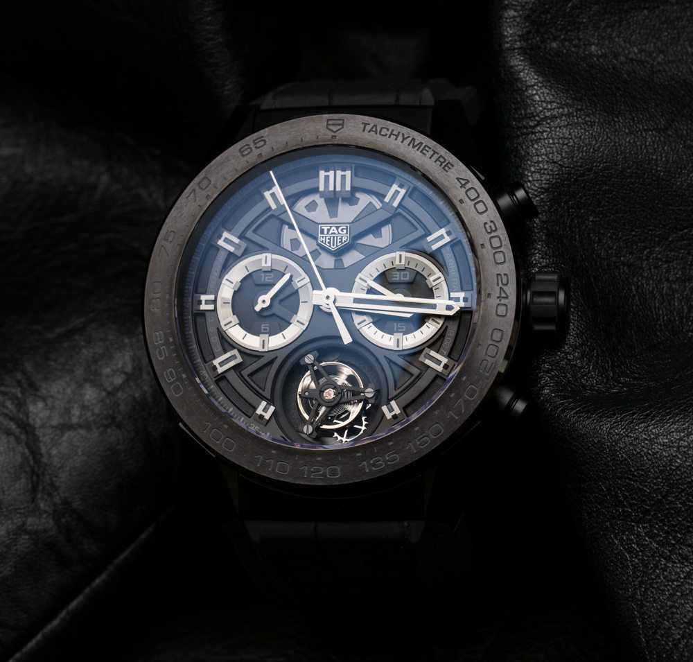 2012 年,他們推出了MikrotourbillonS,然后,就在最近的 2014 年,TAG Heuer 發布了Monaco V4 Tourbillon(在這里動手)。“皮帶驅動”并在頂部安裝橋板,Monaco V4 的陀飛輪以不同的方式設計,但它的價格也約為 170,000 美元。話雖如此,我應該指出,Heuer-02T 陀飛輪的設計靈感來自摩納哥 V4 陀飛輪的構造。TAG Heuer Carrera Heuer-02T Tourbillon 的價格也只是 Monaco Tourbillon 的一小部分,起價約為 16,000 美元。對于長期關注高端手表行業的人來說,這個數字似乎低得不可思議。