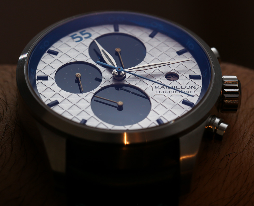 表盤設計質量從非常好到對我的口味不是特別有吸引力。Raidillon 既提供非常經典的表盤,也提供一些更具藝術氣息的表盤。例如,查看我們在 aBlogtoWatch 上介紹的 Raidillon Maya 計時碼表.?我注意到的另一件事是,雖然有些表盤看起來很棒,但另一些則不然。這或多或少取決于 Raidillon 為特定型號選擇的特定顏色、飾面和組合。根據我親自查看許多 Raidillon Chronograph 型號的能力,我可以說,在購買之前親自查看其中一些手表可能是個好主意,以確保表盤看起來和在線營銷中一樣好圖片。我認為,這里的兩款手表(或多或少代表了設計的經典和現代一面)都具有出色的易讀性。然而,一個問題是其中一款手表的圓形日期窗口感覺有點太小而且看起來不那么優雅。