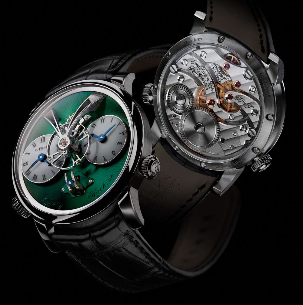 另一個獨特的設計特點——顯然是為了吸引迪拜本地市場——使用阿拉伯-印地語數字作為右側子表盤上的標記。如您所見,MB&F Legacy Machine 1 腕表有兩個時間表盤,每個表盤都可以單獨設置分鐘。由 Jean-Francois Mojon 設計并由 Kari Voutilainen 的工作室完成,MB&F LM1 內部的機芯仍然是現代機械機芯的絕對美感和巔峰之作,并帶有優雅的復古氣息。