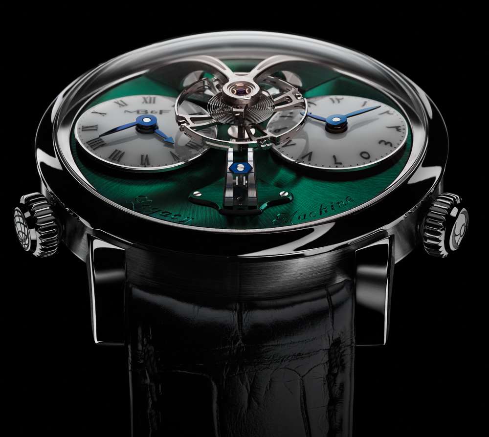 MB&F Legacy Machine 1 的 44 毫米寬和醒目的傳統圓形表殼,當然仍然是該品牌的“保守手表”。MB&F 首次決定生產一款鈦金屬,之前只有黃金或鉑金可供選擇。同樣新的是一個整潔的綠色表盤,它是使用“CVD”(化學氣相沉積)生產的,聽起來像是 PVD(物理氣相沉積)的近親。廣告留言廣告信息結束