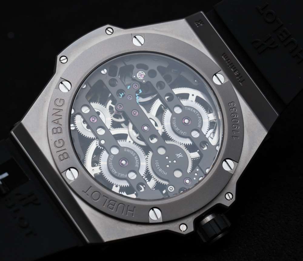 HUB1201 機芯由 223 個零件制成,通過表殼上的前后藍寶石水晶清晰可見。在功能上,機芯僅提供帶小秒盤的時間以及動力儲存指示器。對于喜歡宇舶表風格和品牌個性的人來說,宇舶表Big Bang MECA-10確實是一件機械藝術品。盡管價格昂貴,但我碰巧認為它是一款非常棒的手表。