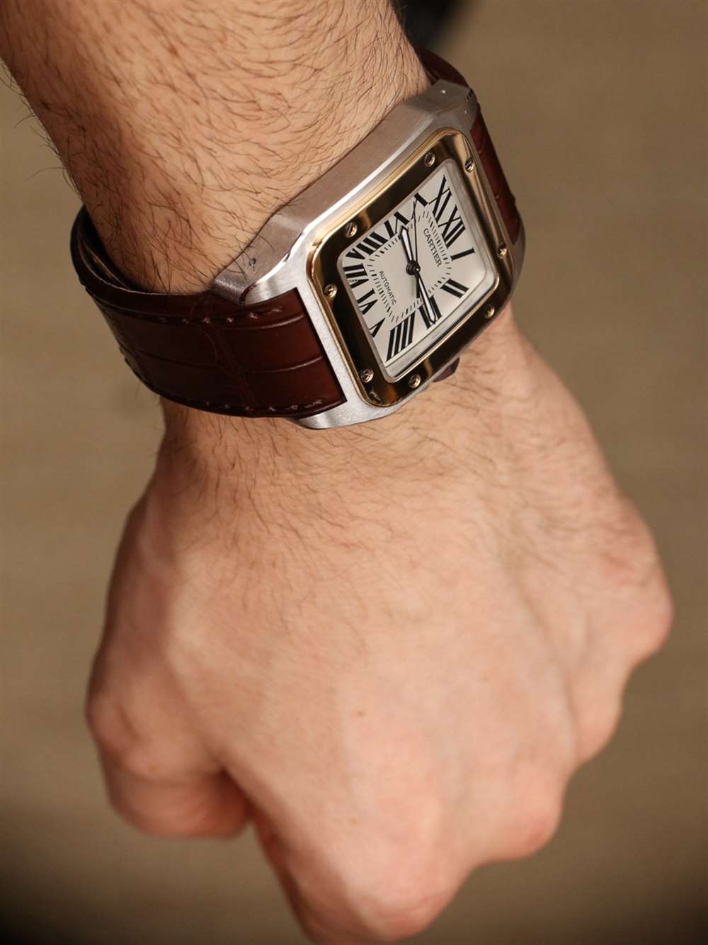 然而,上述趨勢并不普遍,合適的正方形或長方形手表看起來會很棒。卡地亞桑托斯 (Cartier Santos) 系列就是其中之一,而它為何能在手腕上發(fā)揮作用則難以解釋。就像許多運作良好的美學(xué)一樣,大腦并不總是能很好地翻譯眼睛所感知的內(nèi)容。我花了好幾天時間看著手腕上的 Cartier Santos 100,試圖思考“為什么這款方形手表能用,而其他的卻不行?”