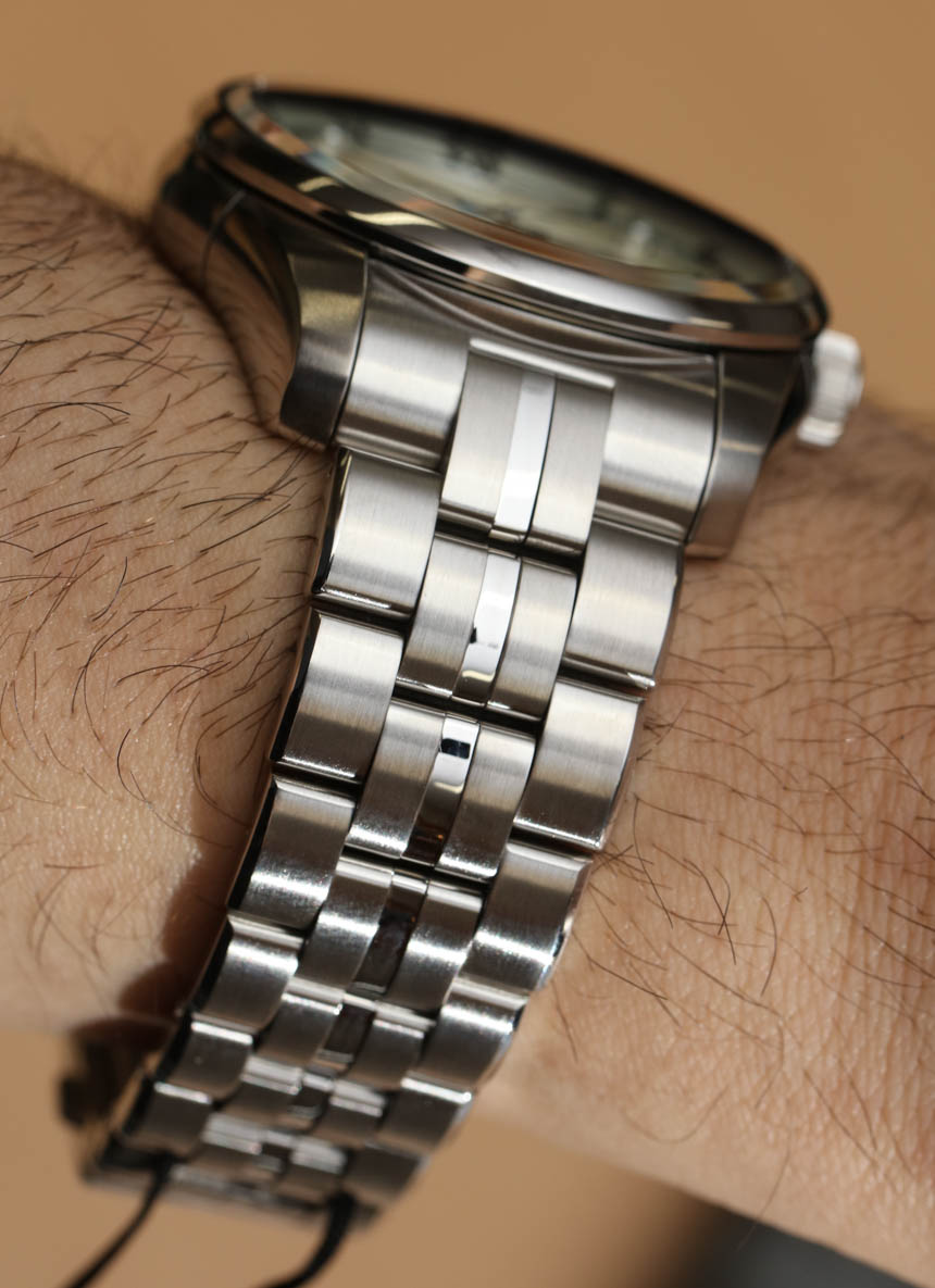 接下來是 Citizen Campanola NZ0000-58W(奶油色表盤)和 NZ0000-58E(黑色表盤)手表,這是我能夠親手拍攝的型號。就像我說的,我能夠看到整個系列,但只有機會拍攝這兩個版本,它們很好地代表了 Citizen Campanola Mechanical 系列。與 NZ0000-07E 不同,這些型號配備了制作精良的精鋼表鏈,非常舒適,因此整個系列感覺更休閑/運動。每個都有鏤空指針,設計很吸引人,但我覺得它們是手表的弱點,因為我認為它們不需要鏤空。易讀性因此受到影響,我認為這些應該充滿內腔或者干脆不要骨架化。