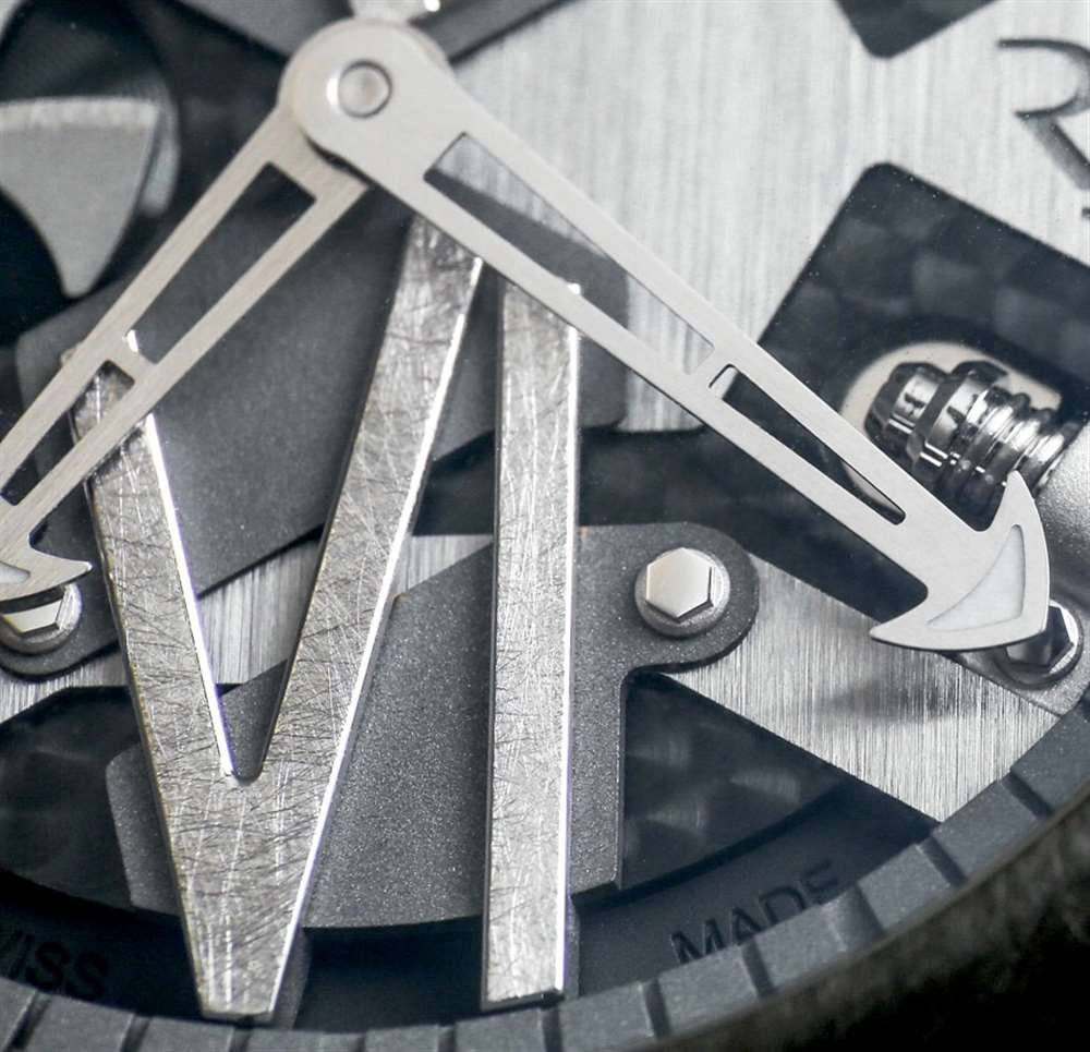 此外,盡管表盤相對瘋狂,但我發(fā)現(xiàn) Romain Jerome Steampunk Auto 46 相當清晰。這是很難僅從圖像中收集到的東西。事實上,如果只判斷圖像,可以安全地假設手表(至少這個版本)大部分難以辨認,因為指針與表盤的大部分色調(diào)相同(是的,有一點點發(fā)光在提示上)。盡管如此,指針的啞光處理以及表圈周圍隱蔽的時針和分針使它成為一款不錯的計時器和腕間時尚單品。