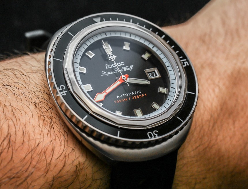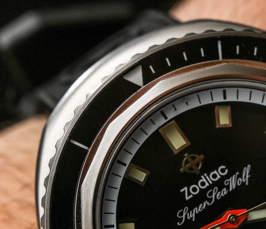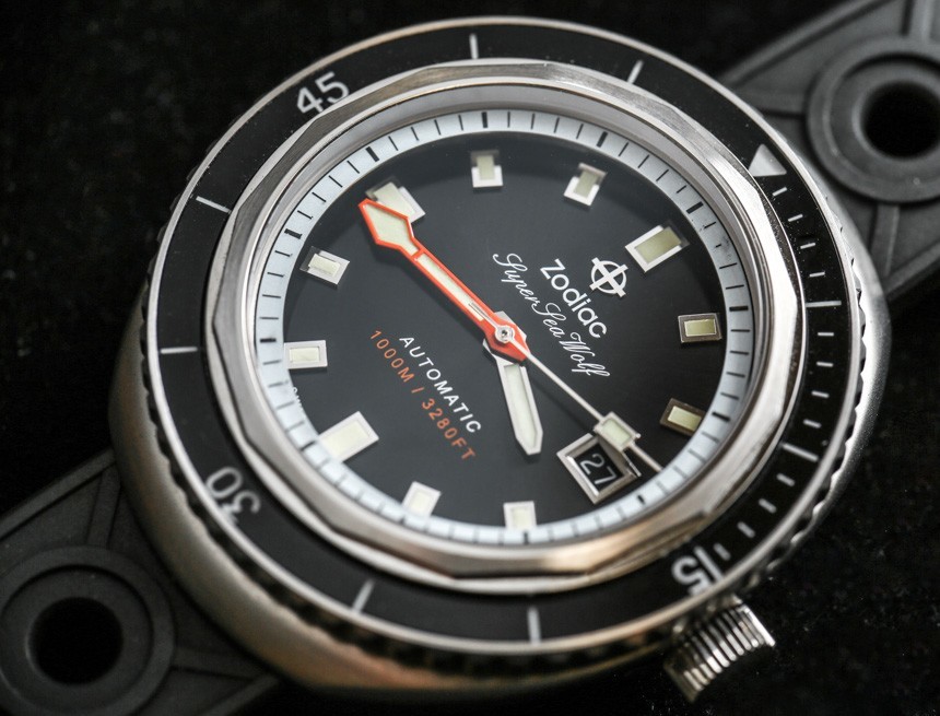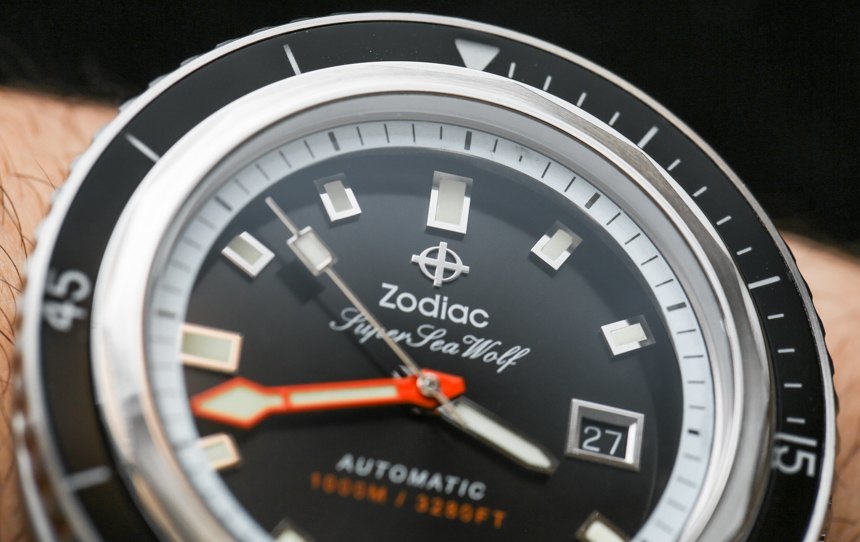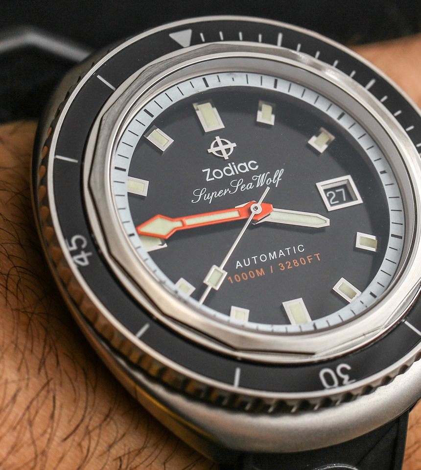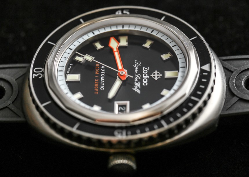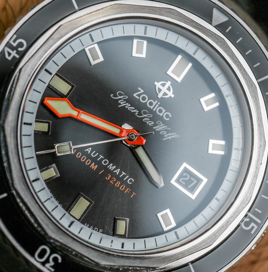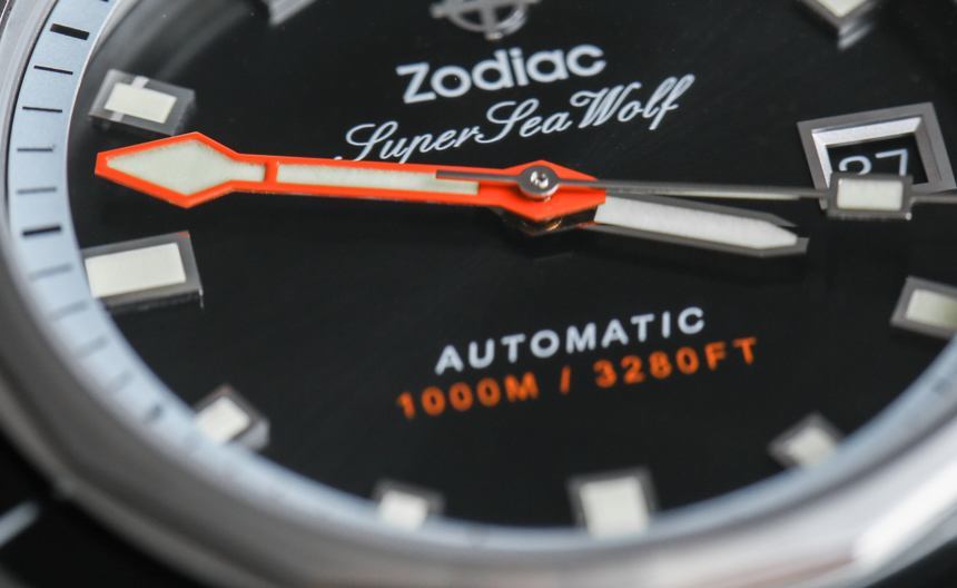 作為一款嚴肅的潛水表,您還擁有橙色的分針。我通常不喜歡潛水表上的橙色分針,但在這里我喜歡添加的顏色,因為考慮到顏色和飾面的整體構成,我認為它做得很好。只要看看所有各種表盤細節,您就會體會到 Zodiac 在 Zodiac Super Sea Wolf 68 系列手表的表盤上所做的一絲不茍。你可能不喜歡這些設計,但我希望每個人都能欣賞到細節設計非常好——當然物超所值。